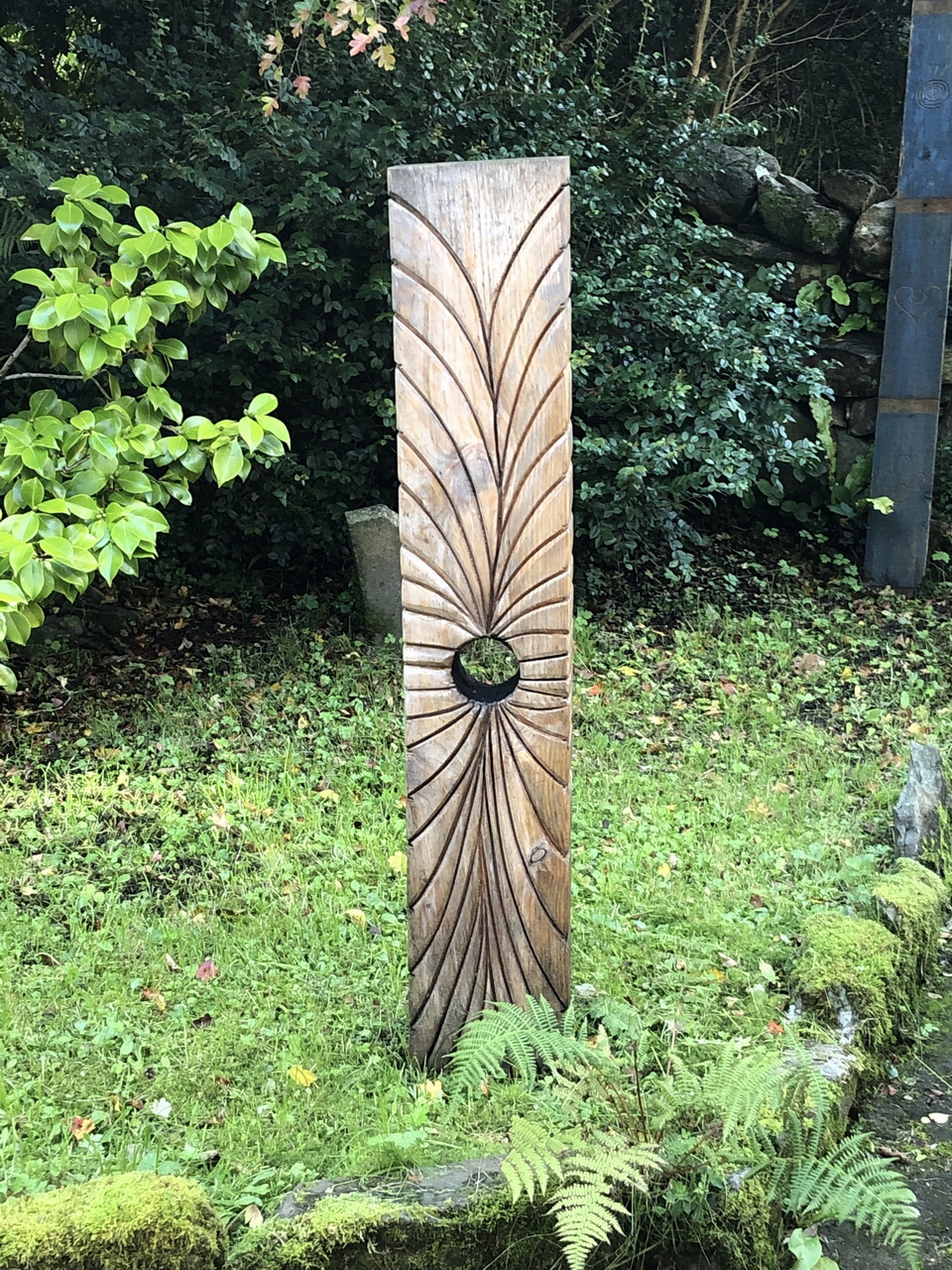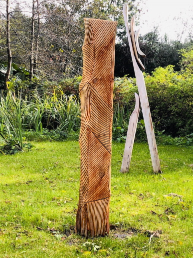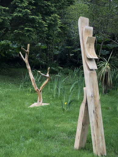 In February 2021 a storm hit 3 Alaska Cedar trees. Out of the fallen trees I have created a Garden Sculptur.