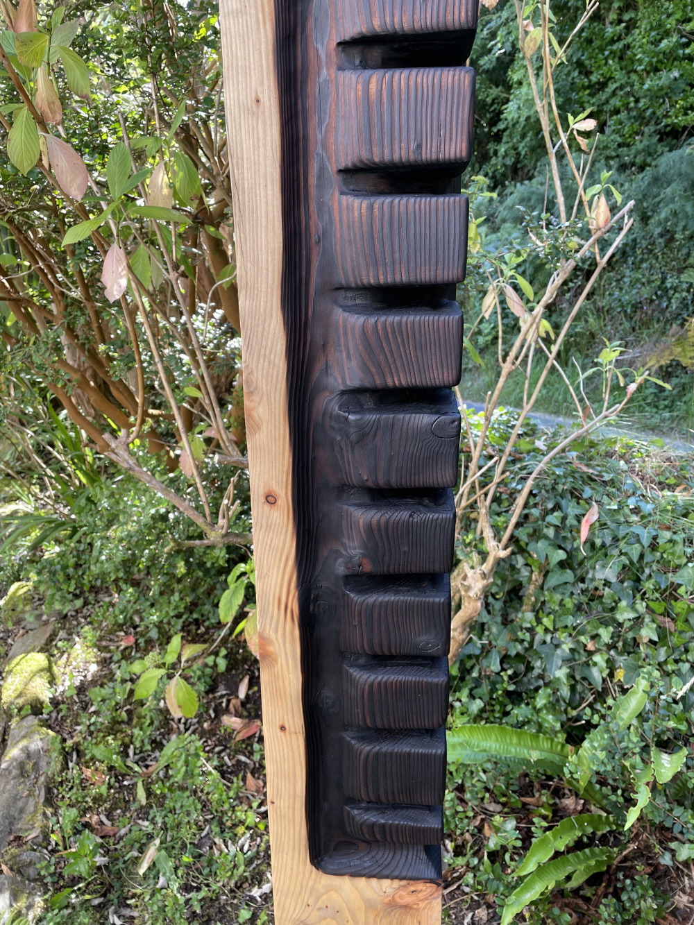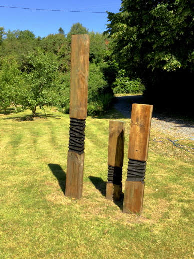 Alle Stelen aus einer sehr großen und alten (ca. 100 Jahre) Kiefer, die 2014 bei einem Sturm gefallen ist.