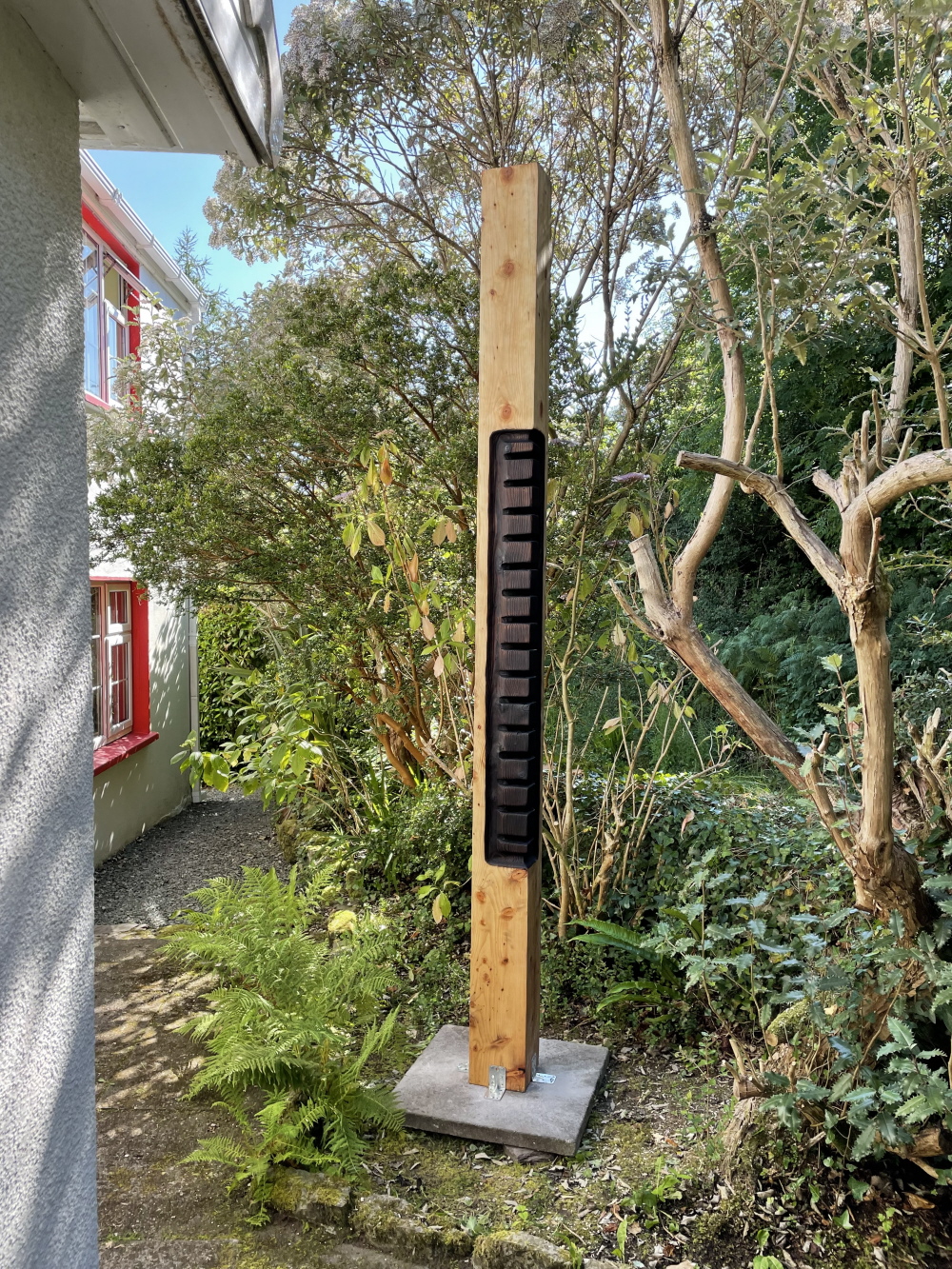 In February 2021, a storm hit 3 Alaskan cedars. I created a new garden sculpture from one of the fallen trees.