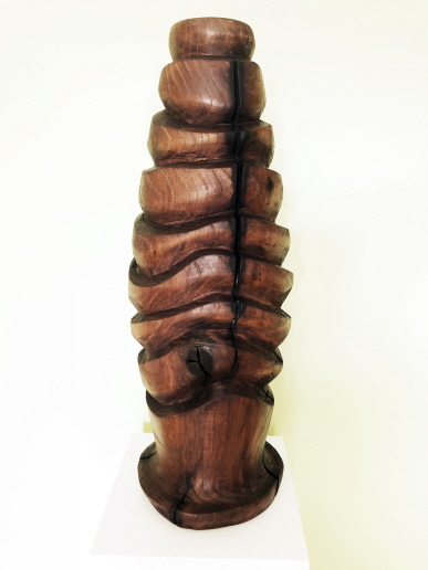 Wet wood turning + hand carved: Red - Oak, limed, Poppy oil with orange oil; height: 59 cm, Ø 20 cm