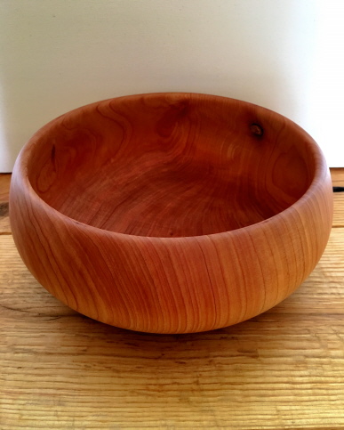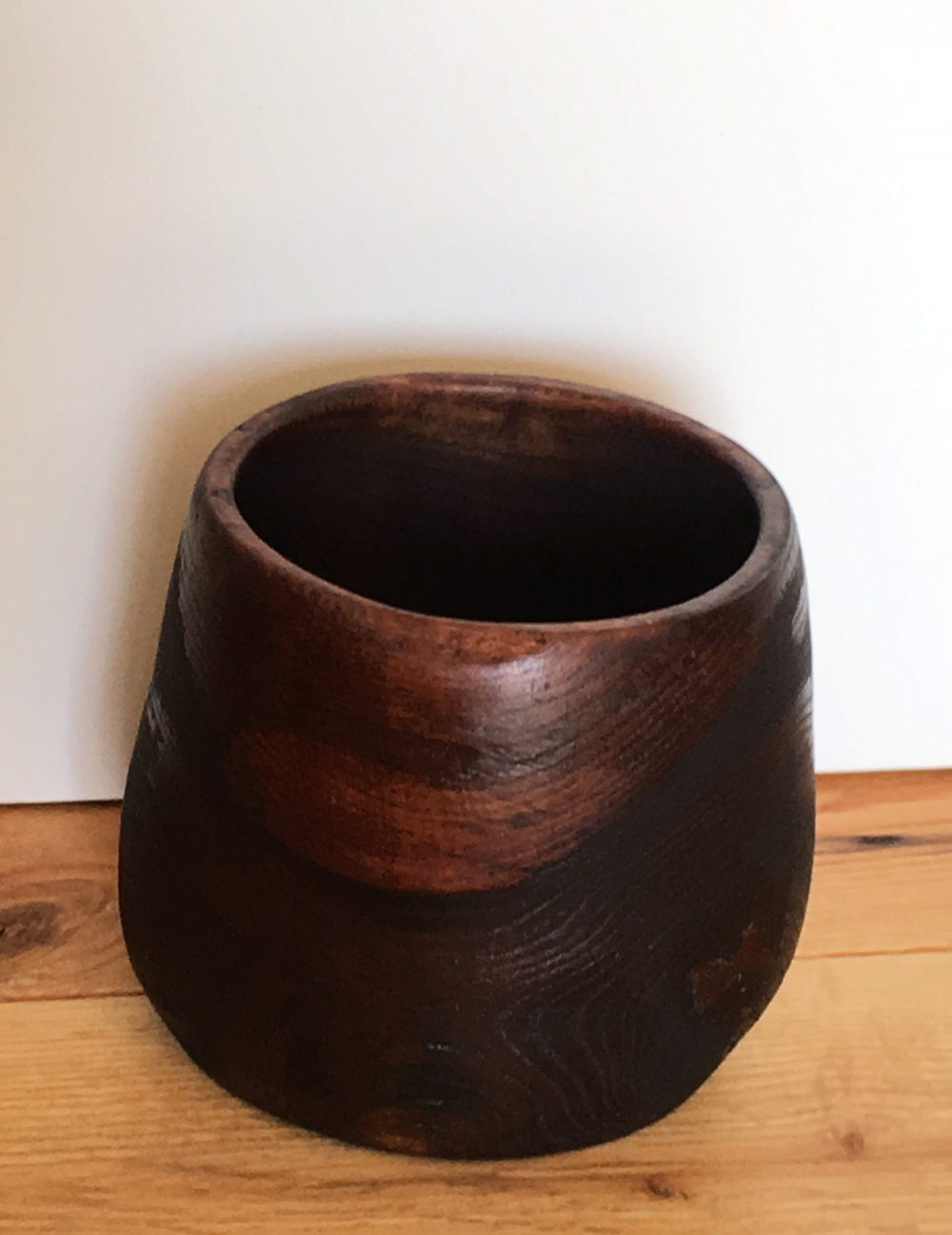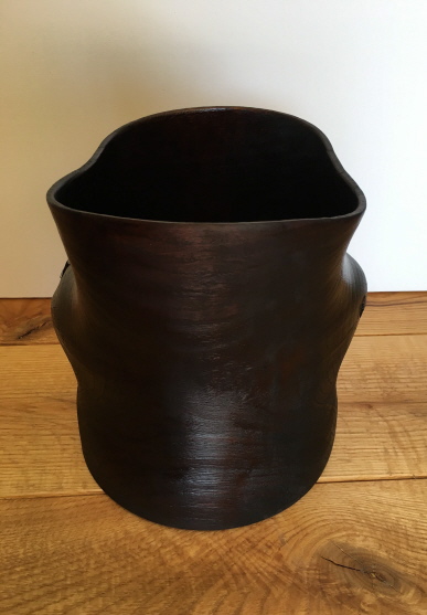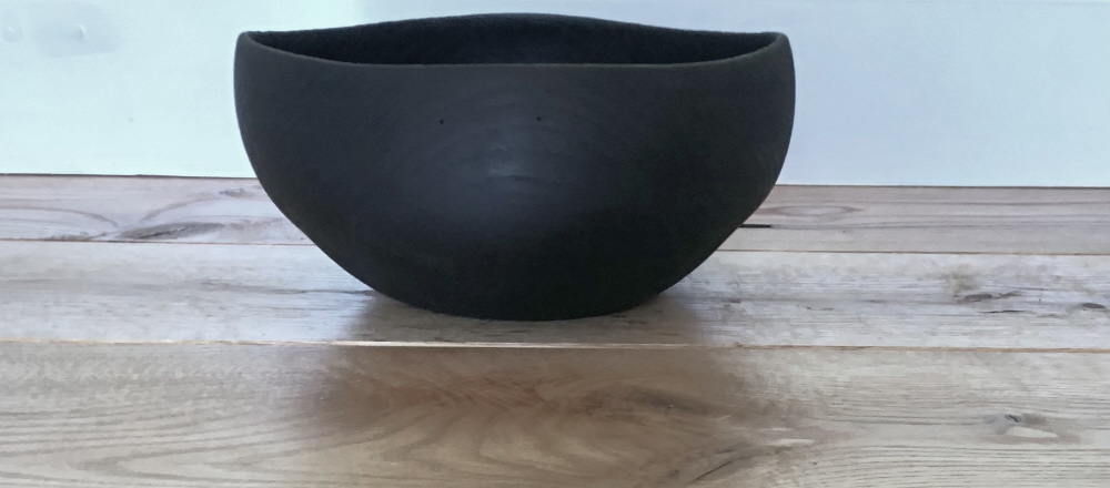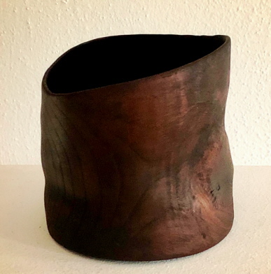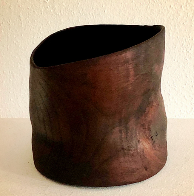 Nass gedrechselt: Rot – Eiche, gekalkt, geschwärzt, geölt; Höhe: 17 cm, Ø 21 cm