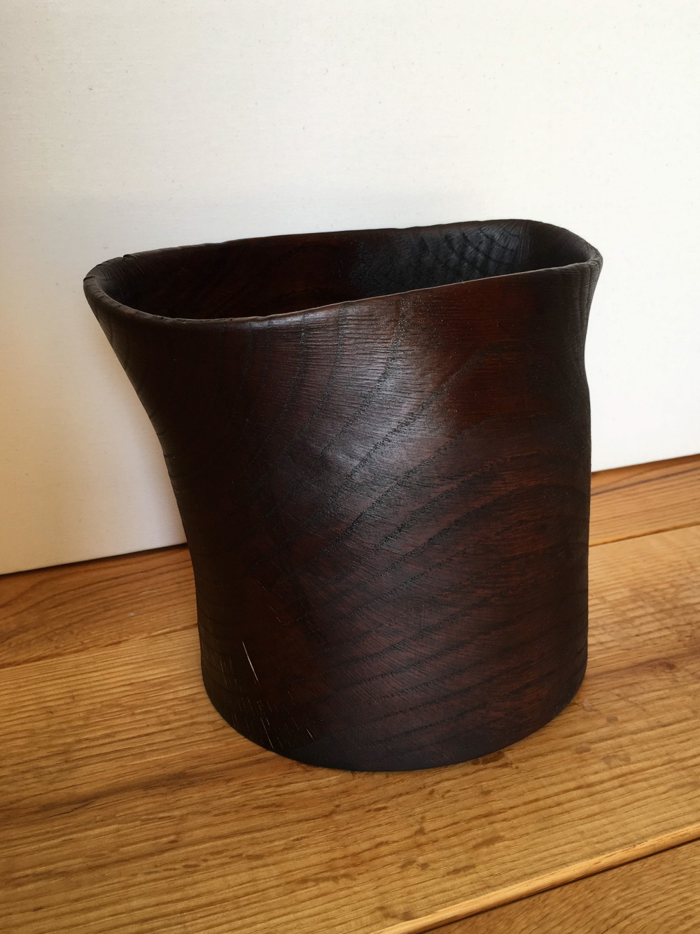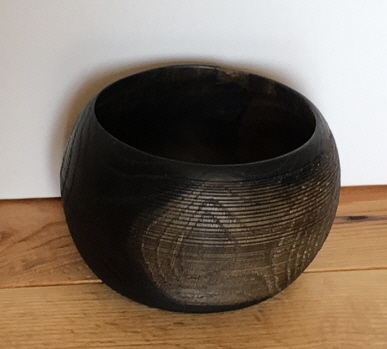 Wet wood turning: White - Oak, limed, blackened, oiled; height: 12cm, Ø 26cm